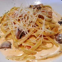 치즈와 베이컨, 소시지가 맛의 조화를 이룬다.