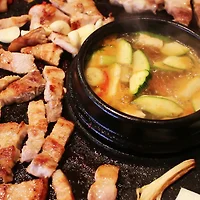 쓰리쁠특안심(29000원) 1인분+ 키조개관자(7000원) + 차돌된장라면 (6000원) + 차돌볶음밥 (3500원)